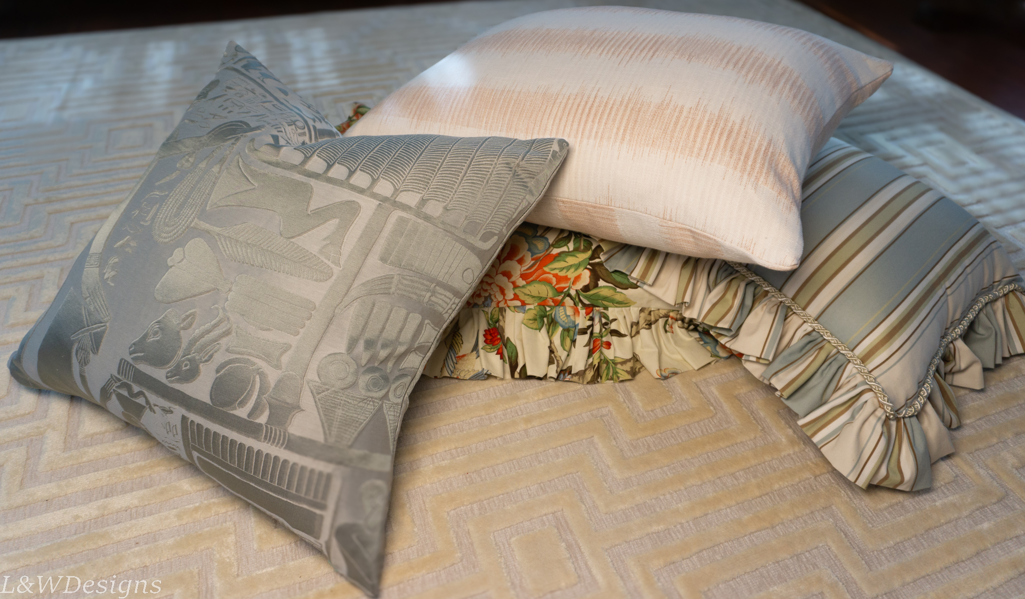 We create the pillows you want in your home. L & W Design removes the work of fabric and trim decisions and restores the stress-free enjoyment of beautiful custom pillows. We call it “instant custom.” From our couches and chairs to yours–