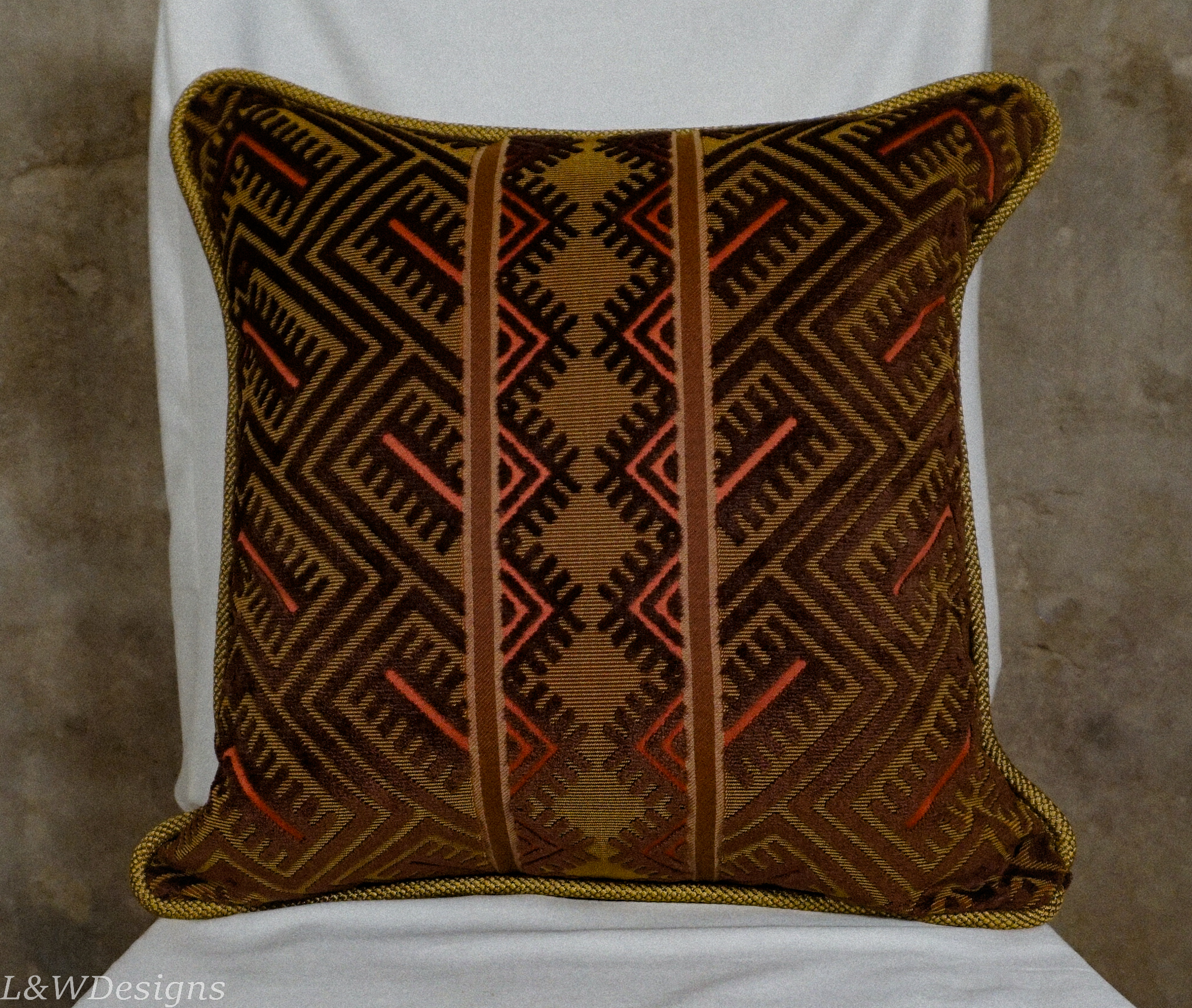 - Made in USA of fabric from India and USA with trim from Germany